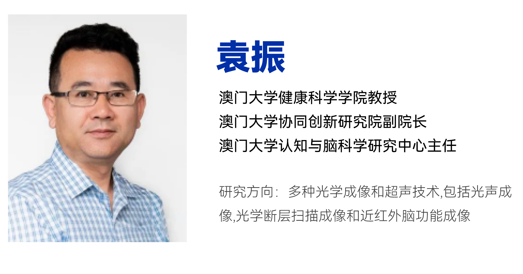 澳门大学袁振教授作为健康科学学院教授、协同创新研究院副院长及认知与脑科学研究中心主任,在国际顶级期刊发表SCI论文300余篇,其主导的科研团队在以自主研发的多种光学成像和超声技术,包括光声成像(PAT),光学断层扫描成像(OCT)和近红外脑功能成像(fNIRS),以及功能超声和脑功能成像等领域具备深厚的学科积淀。其研究人员分别在生物医学成像、生物医学光学、计算科学、模式识别与信号处理算法、临床研究等方面具备深厚的学术功底和丰富的实践经验。